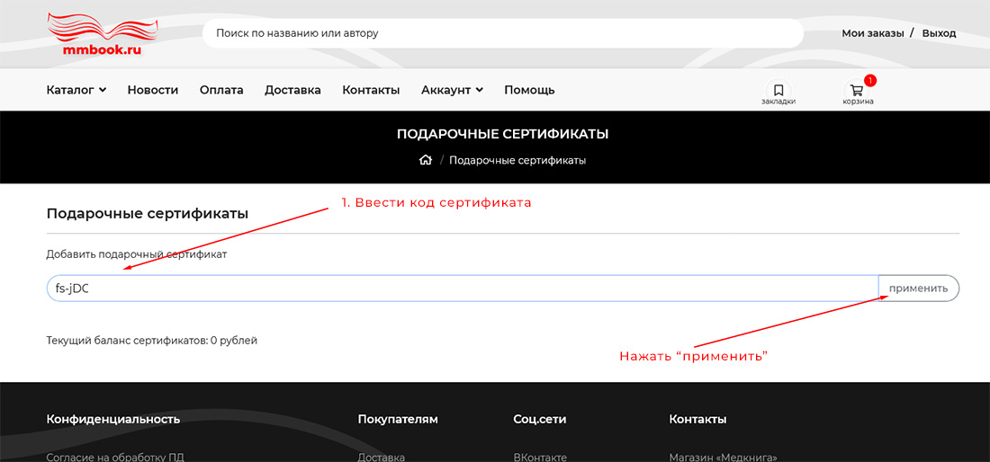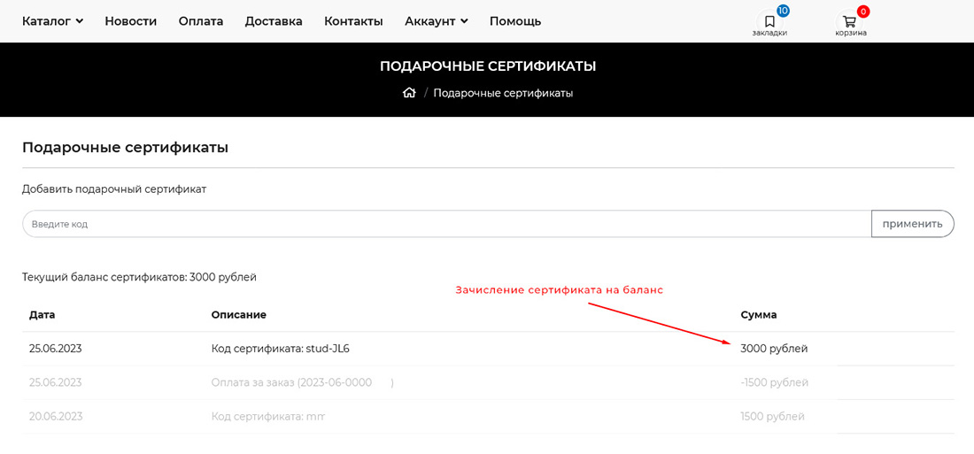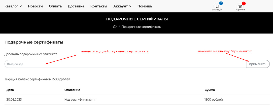 Пошаговое руководство по использованию подарочных сертификатов в нашем интернет-магазине