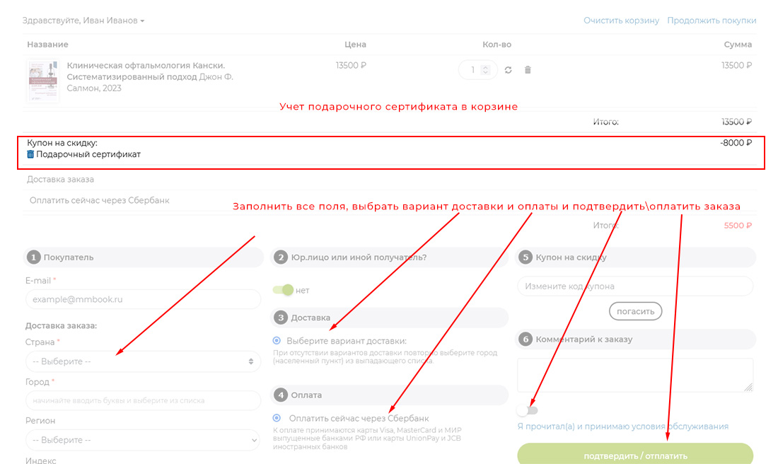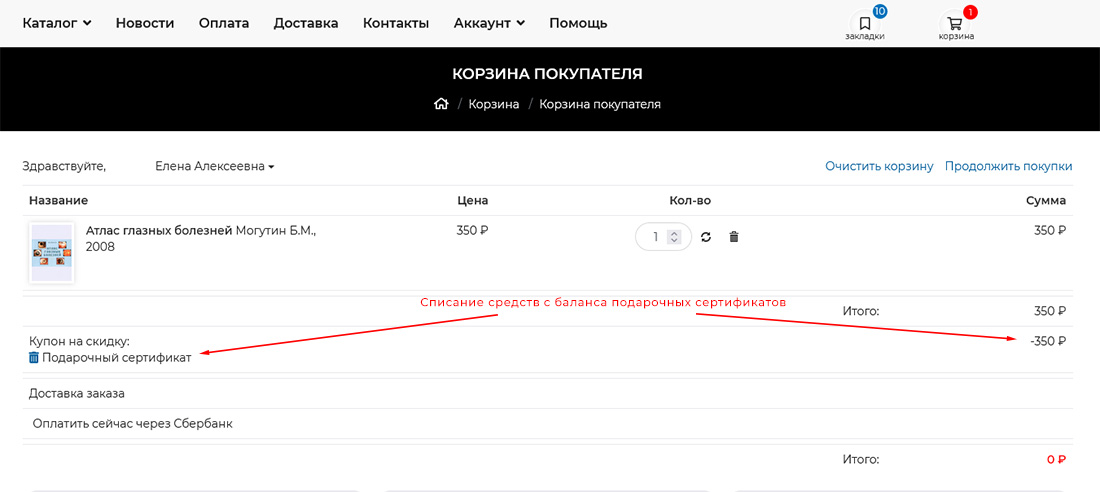 Использование подарочного сертификата