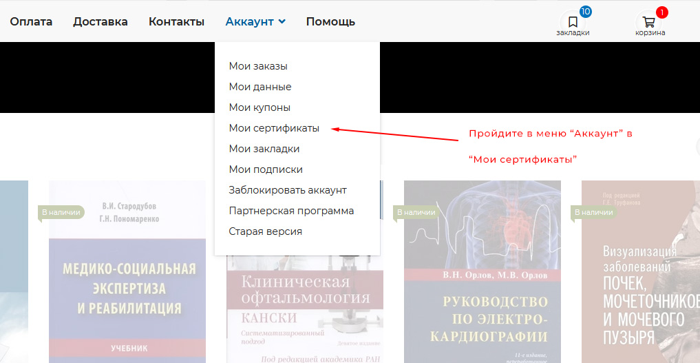 - при покупке медицинских книг на сумму, меньшую номинала сертификата, остаток средств сохраняется на аккаунте владельца сертификата в нашем интернет магазине и может быть использован при следующей покупке.